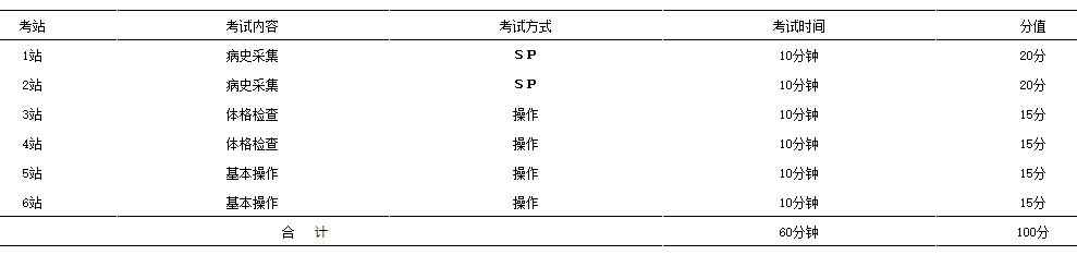 考試時(shí)間長(zhǎng)度:分為6站,每站10分鐘,共1小時(shí)。