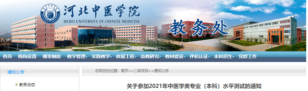 河北省中醫(yī)學院關(guān)于參加2021年中醫(yī)學類專業(yè)(本科)水平測試的通知發(fā)布,為方便大家了解,在此醫(yī)學教育網(wǎng)小編為大家整理如下內(nèi)容: