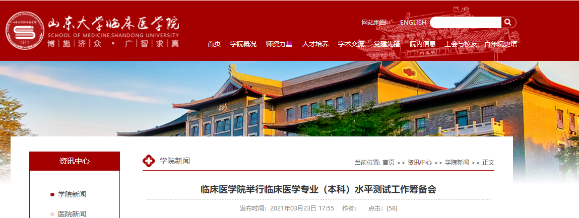 山東大學(xué)臨床醫(yī)學(xué)院發(fā)布臨床醫(yī)學(xué)院舉行臨床醫(yī)學(xué)專業(yè)(本科)水平測(cè)試工作籌備會(huì)通知,相信參加山東大學(xué)臨床醫(yī)學(xué)院2021年臨床醫(yī)學(xué)專業(yè)(本科)水平測(cè)試的考生都在關(guān)注,為方便大家了解,在此醫(yī)學(xué)教育網(wǎng)小編為大家整理如下內(nèi)容: