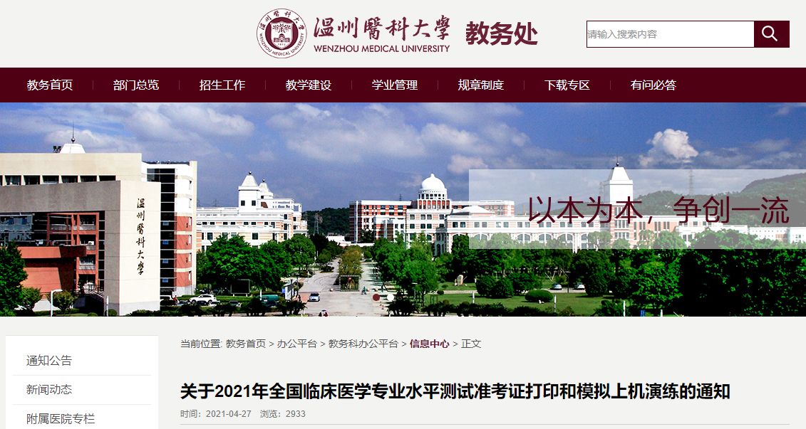 溫州醫(yī)科大學(xué)發(fā)布關(guān)于2021年全國臨床醫(yī)學(xué)專業(yè)水平測(cè)試準(zhǔn)考證打印和模擬上機(jī)演練的通知,為幫助參加溫州醫(yī)科大學(xué)021年全國臨床醫(yī)學(xué)(本科)專業(yè)水平測(cè)試的考生了解,在此醫(yī)學(xué)教育網(wǎng)小編為大家整理如下內(nèi)容: