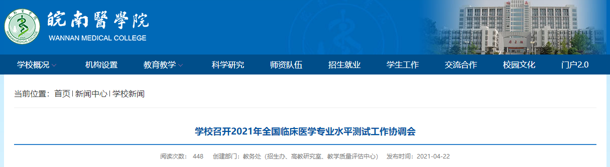 皖南醫(yī)學院發(fā)布學校召開2021年全國臨床醫(yī)學專業(yè)水平測試工作協(xié)調會通知,為幫助參加皖南醫(yī)學院2021年全國臨床醫(yī)學(本科)專業(yè)水平測試的考生了解,在此醫(yī)學教育網(wǎng)小編為大家整理如下內容: