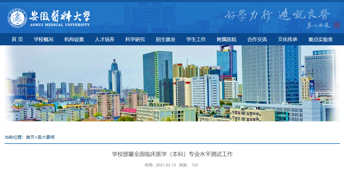 安徽醫(yī)科大學(xué)發(fā)布學(xué)校部署2021年全國(guó)臨床醫(yī)學(xué)(本科)專業(yè)水平測(cè)試工作通知,為幫助參加安徽醫(yī)科大學(xué)2021年全國(guó)臨床醫(yī)學(xué)(本科)專業(yè)水平測(cè)試的考生了解,在此醫(yī)學(xué)教育網(wǎng)小編為大家整理如下內(nèi)容: