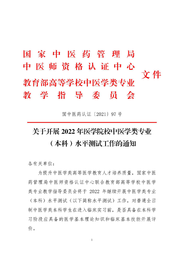 關(guān)于開展2022年醫(yī)學(xué)院校中醫(yī)學(xué)類專業(yè)(本科)水平測試工作的通知