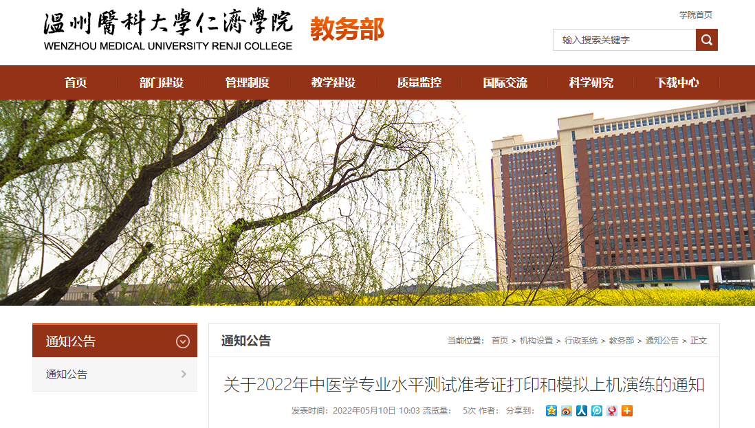 溫州醫(yī)科大學(xué)仁濟(jì)學(xué)院關(guān)于2022年中醫(yī)學(xué)專業(yè)水平測(cè)試準(zhǔn)考證打印的通知!有關(guān)通知醫(yī)學(xué)教育網(wǎng)編輯整理分享如下: