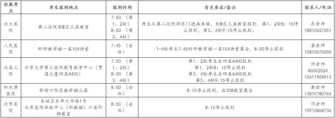 各考點(diǎn)醫(yī)院報(bào)到時(shí)間、地點(diǎn)詳見(jiàn)下表。請(qǐng)各輪次考生務(wù)必按時(shí)到達(dá)指定地點(diǎn)報(bào)到,遲到考生不得進(jìn)入考場(chǎng)。