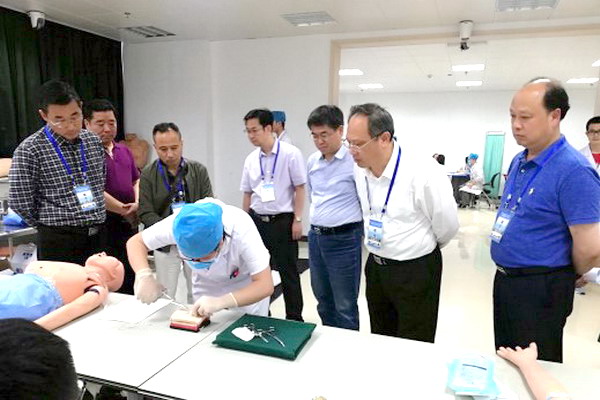 考試分為理論考試和技能考試兩個部分。5月31日上午,理論考試在實驗教學樓D座、E座、A座和圖書館機房進行,考試內(nèi)容涵蓋基礎醫(yī)學、臨床醫(yī)學、預防醫(yī)學和醫(yī)學人文四個方面,總題量為300題;5月31下午至6月2日上午,技能考試在一附院國家級臨床技能培訓中心分12組14輪進行,主要測試醫(yī)學生的臨床基本技能,采用國際通行的客觀結(jié)構(gòu)化臨床測試(OSCE)的形式,使用標準化病人(SP)對學生進行考核。共抽調(diào)考官144人,招募培訓標準化病人和標準體檢者100余人,考務與保障人員80余人。