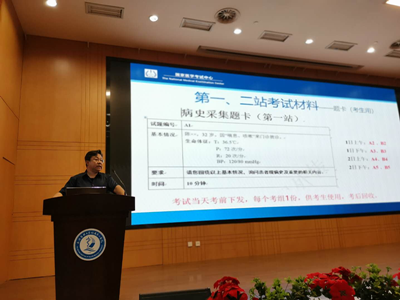 考試前半個月,學校教務(wù)處根據(jù)《醫(yī)師資格考試臨床類別分階段考試實證研究第一階段考試實施方案》要求,制定我校臨床基本技能考試實施方案和相關(guān)制度,召開專門會議,部署相關(guān)工作。先后組織考官、標準化病人(SP)、考務(wù)以及志愿者培訓等工作,并針對今年考試形式的變化,在原有組織經(jīng)驗的基礎(chǔ)上,優(yōu)化環(huán)節(jié),合理分配人員,分工明確,重點演練。