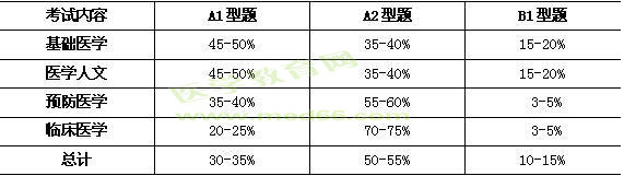 3.考試形式、題量和題型:理論考試采用計算機(jī)化考試形式,共400題,分為2個單元,200題/單元,每單元2.5小時。題型為A1型、A2型和B1型題。