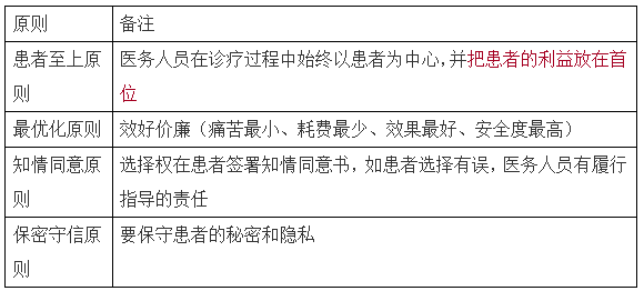 【答案解析】 臨床診療道德的原則是:患者至上原則、最優(yōu)化原則、知情同意原則、保密守信原則。