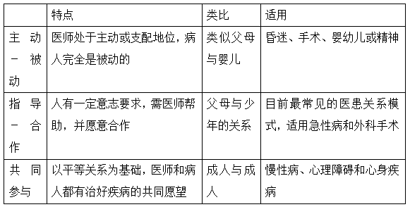 【答案解析】 主動-被動型模式中,醫(yī)患雙方不是雙向作用,而是醫(yī)師對患者單向發(fā)生作用。這種模式適用于昏迷、休克、精神病患者發(fā)作期、嚴重智力低下者以及嬰幼兒等一些難以表達主觀意志的患者。