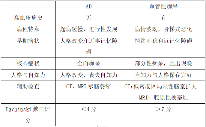 【知識點】阿爾茨海默病與血管性癡呆的鑒別
