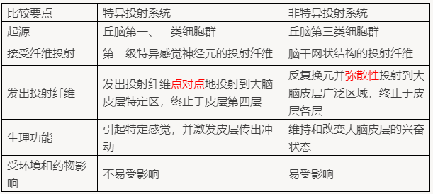 【知識點】特異投射系統(tǒng)和非特異投射系統(tǒng)的比較