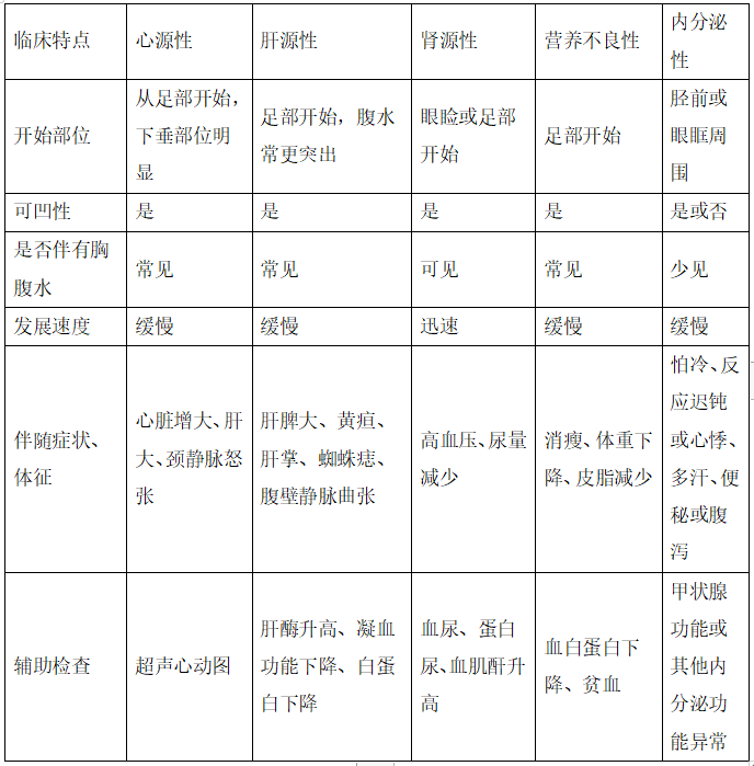 各種常見(jiàn)水腫疾病的臨床特點(diǎn)