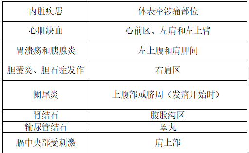 臨床常見內(nèi)臟疾患的體表牽涉痛部位