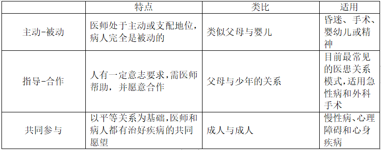 考點點撥:醫(yī)患關(guān)系倫理模式
