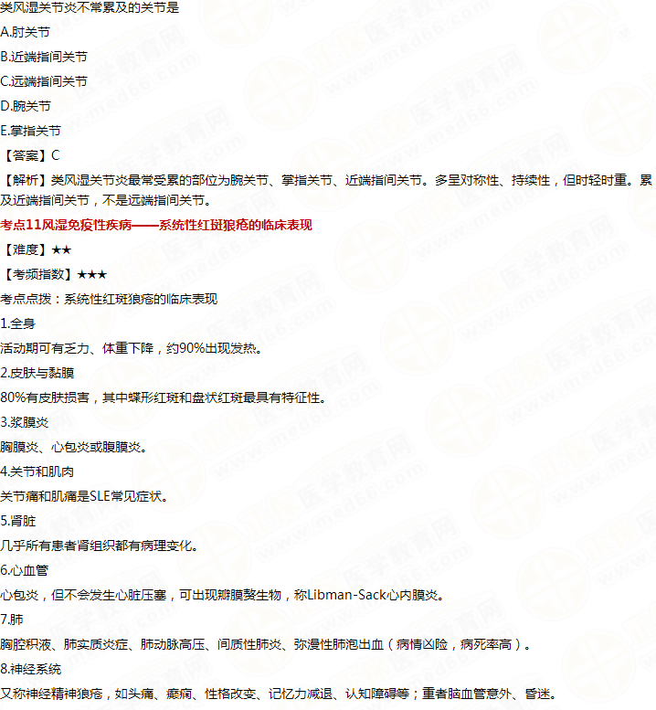 以上“臨床執(zhí)業(yè)醫(yī)師考試外科《風(fēng)濕免疫系統(tǒng)》3大高頻考點(diǎn)(附題)”內(nèi)容醫(yī)學(xué)教育網(wǎng)整理,更多輔導(dǎo)精華資料、備考經(jīng)驗(yàn)、免費(fèi)視頻課程請(qǐng)查看正保醫(yī)學(xué)教育網(wǎng)醫(yī)師分階段欄目
