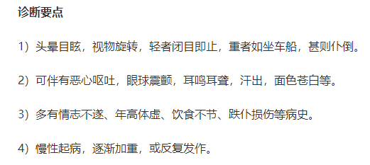 主癥:眩暈,頭重昏蒙,或伴視物旋轉(zhuǎn),胸悶惡心,嘔吐痰涎,食少多寐,舌苔白膩,脈濡滑。