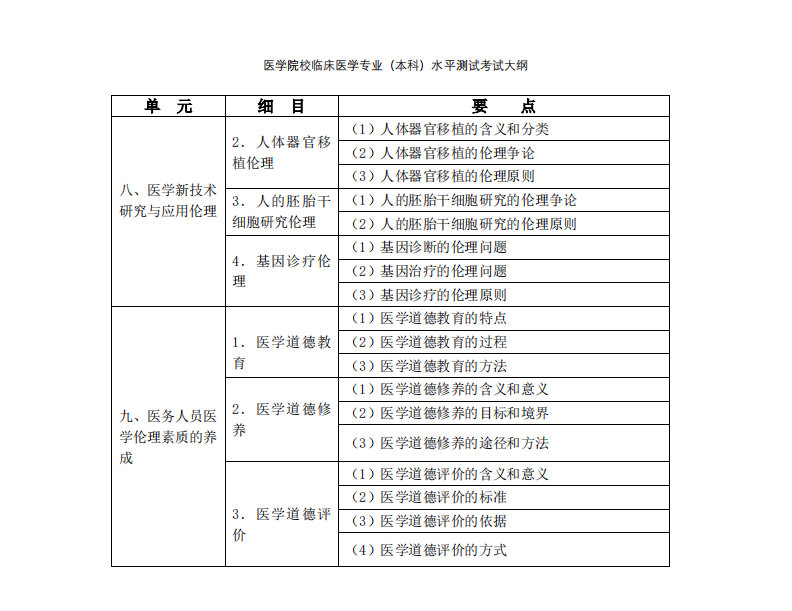 “2022年臨床醫(yī)學(xué)專業(yè)(本科)水平測(cè)試《醫(yī)學(xué)倫理學(xué)》考試大綱”文章醫(yī)學(xué)教育網(wǎng)小編搜集整理,更多醫(yī)考信息、備考資料、模擬試題請(qǐng)關(guān)注醫(yī)學(xué)教育網(wǎng)。