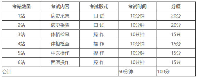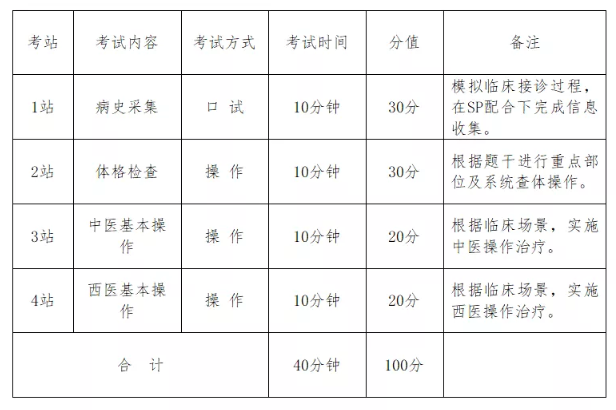 1.考試形式:客觀結(jié)構(gòu)化臨床考核(Objective Structured Clinical Examination,以下簡稱“OSCE”),包括問診、操作、標準化病人(Standardized Patients,以下簡稱“SP”)配合。