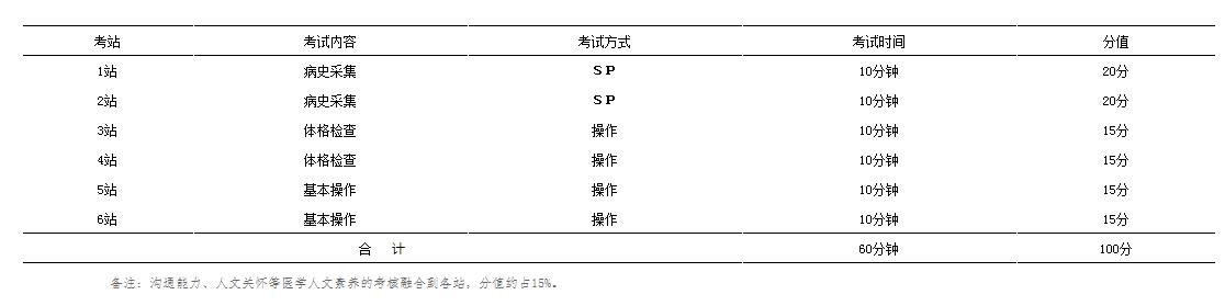 主要考查病史采集、體格檢查和基本操作技能,同時對溝通交流能力與人文關懷進行評價??荚囋O計: