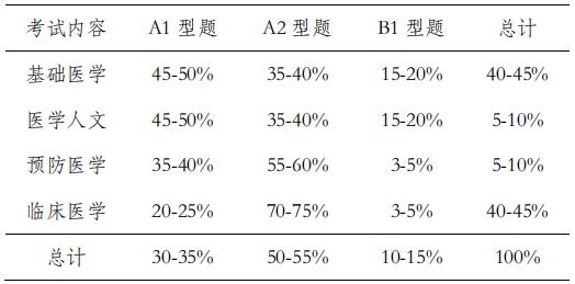 1、理論考試為計(jì)算機(jī)化考試,考試時(shí)長(zhǎng)3.5小時(shí),總題量為330題(其中30題用于考試研究,不計(jì)入考生水平測(cè)試總成績(jī))。其中,基礎(chǔ)醫(yī)學(xué)占40-45%,醫(yī)學(xué)人文占5-10%,預(yù)防醫(yī)學(xué)占5-10%,臨床醫(yī)學(xué)占40-45%。題型比例如下:
