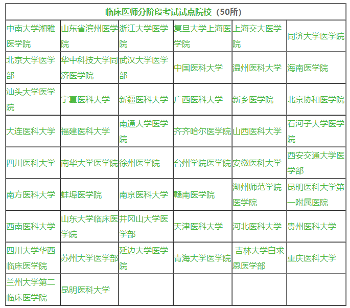臨床醫(yī)師分階段考試試點(diǎn)院校(50所)