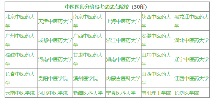 中醫(yī)醫(yī)師分階段考試試點(diǎn)院校(30所)