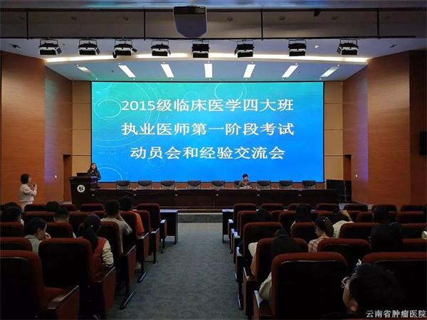 3月26日下午,教學(xué)管理科在醫(yī)院門診五樓3號(hào)多功能報(bào)告廳召開2015級臨床醫(yī)學(xué)專業(yè)四大班執(zhí)業(yè)醫(yī)師第一階段考試動(dòng)員會(huì)和經(jīng)驗(yàn)交流會(huì),董堅(jiān)副院長對階段考進(jìn)行了動(dòng)員,教學(xué)管理科龍庭鳳副科長作了《關(guān)于分階段考試情況分析和工作計(jì)劃》的介紹,2014級臨床醫(yī)學(xué)專業(yè)2位在階段考中取得優(yōu)異成績的同學(xué)分享了考試的建議與經(jīng)驗(yàn)。會(huì)議由教學(xué)管理科蔣永新科長主持,2015級臨床四大班57名同學(xué)及其一對一導(dǎo)師參加了會(huì)議。