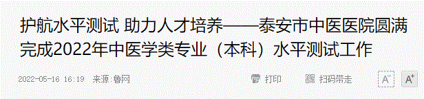 泰安市中醫(yī)醫(yī)院圓滿完成2022年中醫(yī)學(xué)類專業(yè)(本科)水平測試工作,醫(yī)學(xué)教育網(wǎng)編輯為您整理以下相關(guān)信息,請考生及時查看: