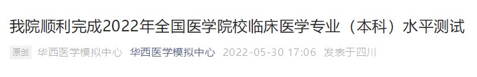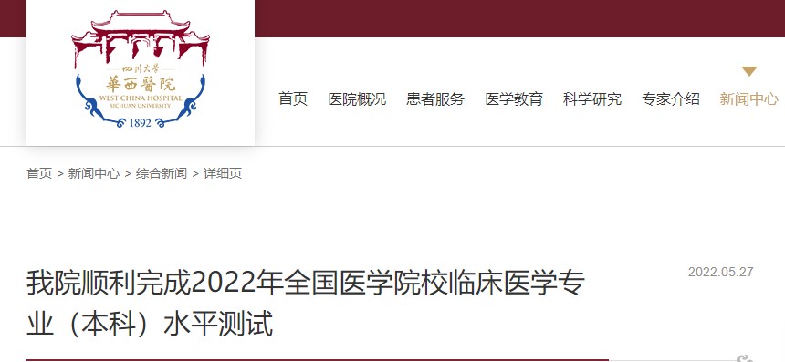 關于四川大學華西醫(yī)院順利完成2022年全國醫(yī)學院校臨床醫(yī)學專業(yè)(本科)水平測試的信息內(nèi)容,醫(yī)學教育網(wǎng)編輯為您整理以下相關信息,請考生及時查看: