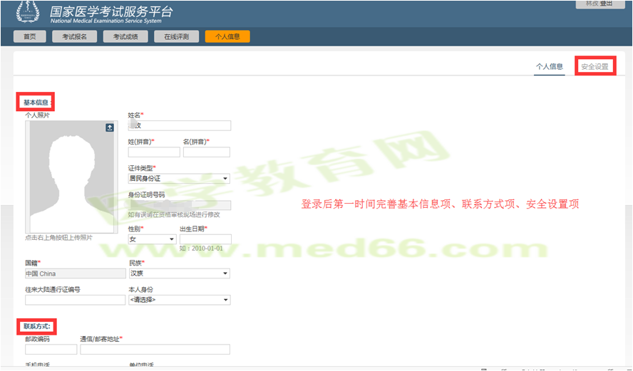 考生只需完善基本信息項(xiàng)和聯(lián)系方式項(xiàng),并上傳近6個(gè)月內(nèi)的2寸免冠正面半身彩色白底照片(照片要求為jpg格式文件,不要大于40k)。