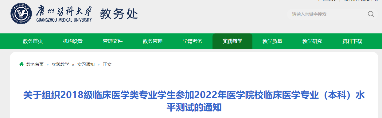 廣州醫(yī)科大學關(guān)于2022年臨床醫(yī)學專業(yè)(本科)水平測試的通知發(fā)布!具體內(nèi)容醫(yī)學教育網(wǎng)編輯整理分享如下:
