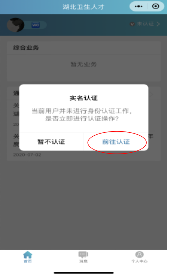 也可在首頁點擊的“未認證”進入認證通道,或者在個人中心的實名認證菜單進行實名認證操作。