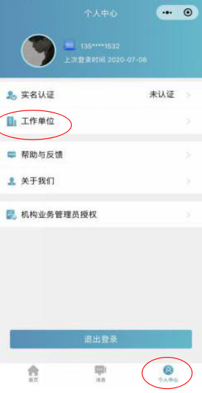 1、完成實名認證后,在個人中心-工作單位中完善單位信息。