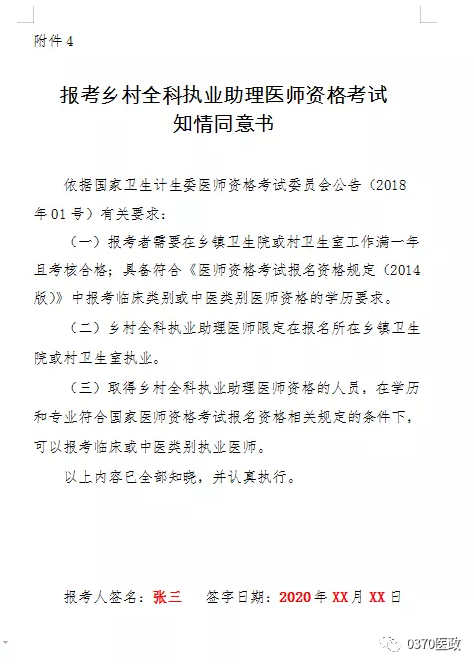 附件4、報考鄉(xiāng)村全科執(zhí)業(yè)助理醫(yī)師資格考試知情同意書