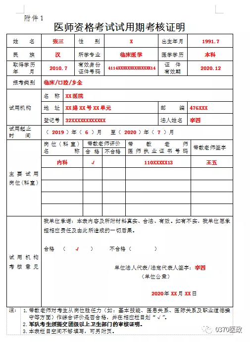 4.醫(yī)師資格考試試用期考核證明(附件1)