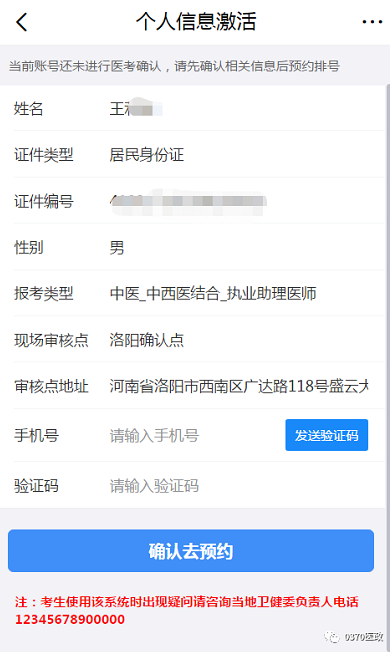 2.登錄后,考生先核實(shí)信息,輸入手機(jī)號(hào),激活個(gè)人信息。