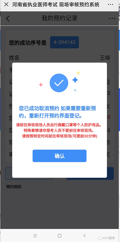 1.考生預(yù)約成功后,點(diǎn)擊預(yù)約成功頁(yè)的確認(rèn)按鈕,可看到預(yù)約記錄。