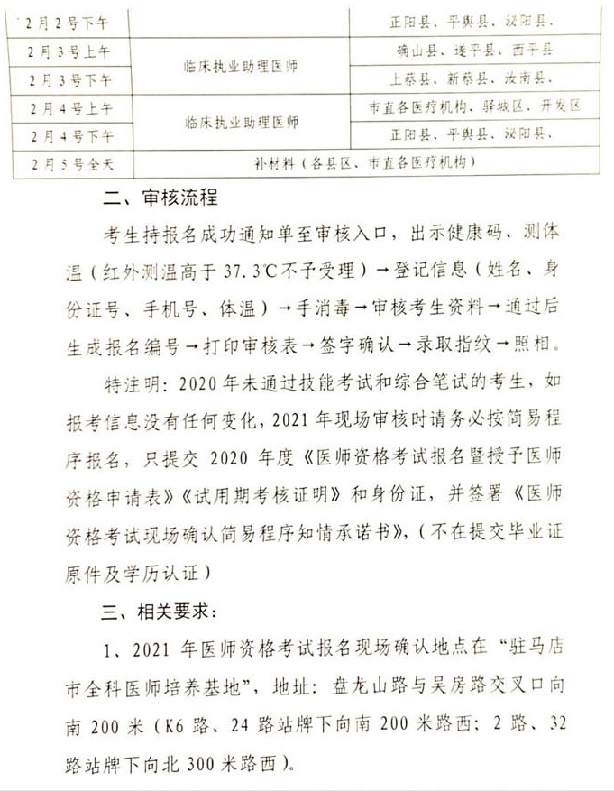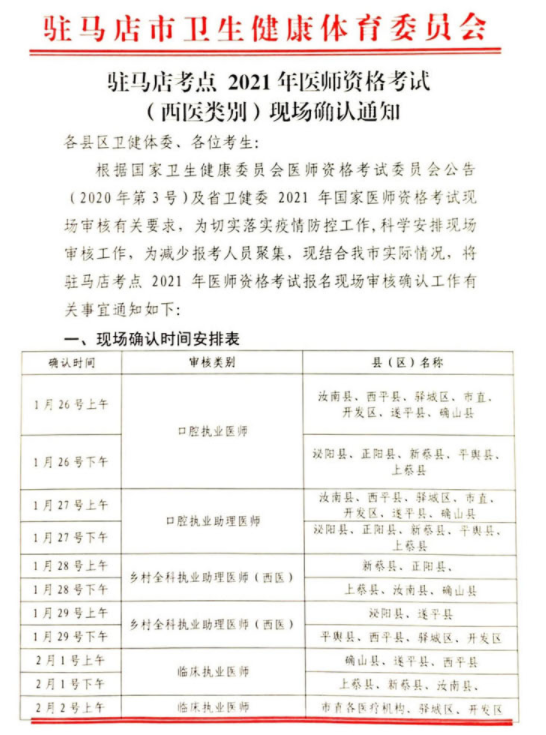 河南省駐馬店考點(diǎn)2021年醫(yī)師資格考試(西醫(yī)類別)現(xiàn)場(chǎng)確認(rèn)通知