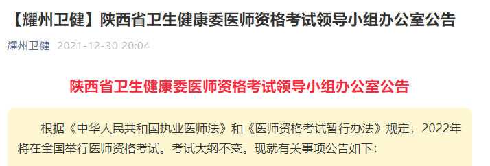 【耀州衛(wèi)健】陜西省衛(wèi)生健康委醫(yī)師資格考試領(lǐng)導(dǎo)小組辦公室公告