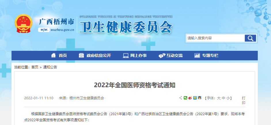 2022年廣西梧州市全國醫(yī)師資格考試通知(現(xiàn)場審核時間及提交材料清單)