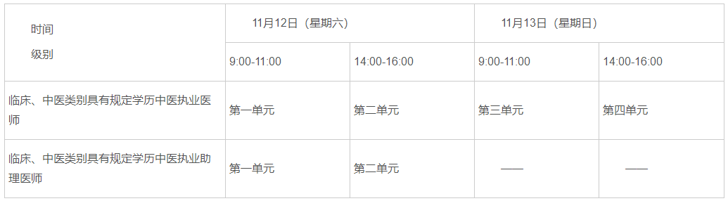 醫(yī)學(xué)綜合考試“一年兩試”試點第二次考試時間如下: