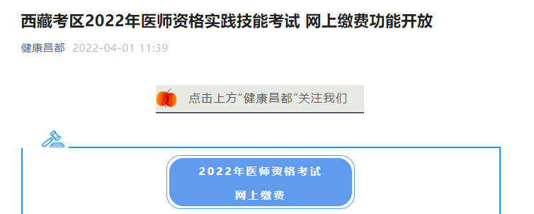 西藏考區(qū)昌都考點(diǎn)2022年醫(yī)師資格實(shí)踐技能考試網(wǎng)上繳費(fèi)入口開放!