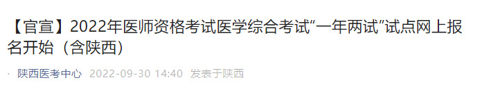 【官宣】2022年醫(yī)師資格考試醫(yī)學(xué)綜合考試“一年兩試”試點(diǎn)網(wǎng)上報(bào)名開始(含陜西)