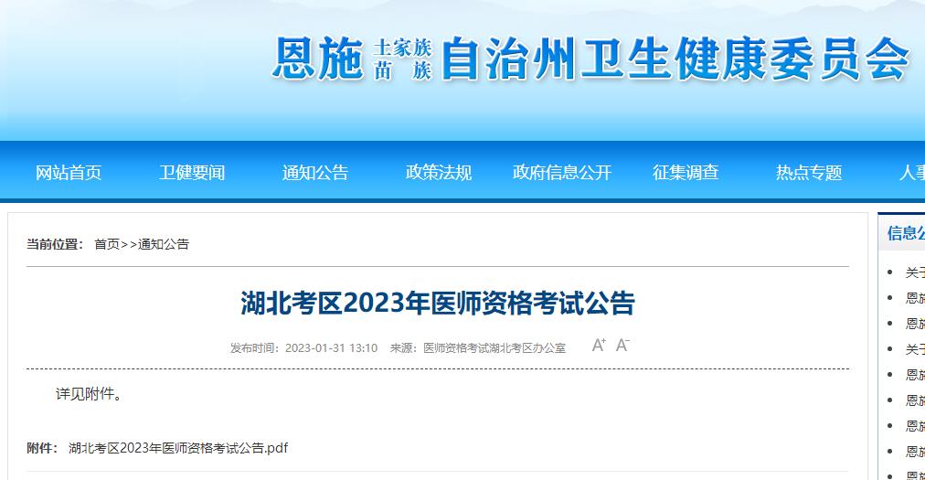 湖北考區(qū)恩施州2023年國家醫(yī)師資格考試報名通知公告