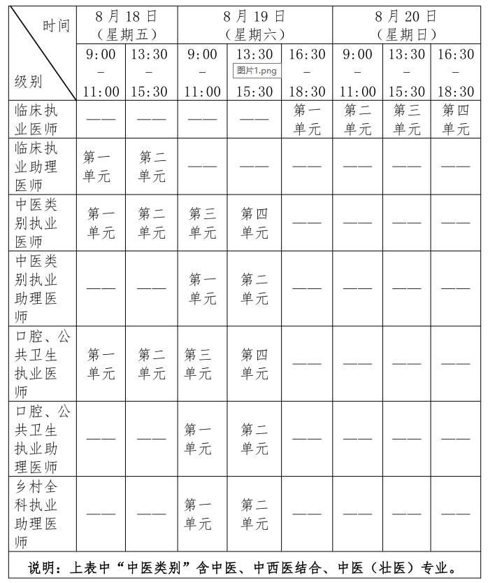 實(shí)踐技能考試合格分?jǐn)?shù)線為60分,實(shí)踐技能考試原則上在國(guó)家實(shí)踐技能考試基地進(jìn)行,在國(guó)家實(shí)踐技能考試基地參加考試且成績(jī)合格者,成績(jī)兩年有效。全國(guó)統(tǒng)一考試時(shí)間如下(具體考試時(shí)間詳見考生本人準(zhǔn)考證):