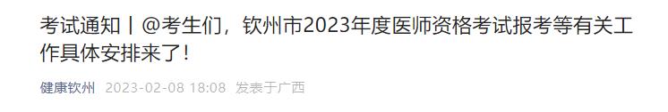 廣西考區(qū)欽州市2023年度醫(yī)師資格考試報(bào)考/審核時(shí)間及材料通知