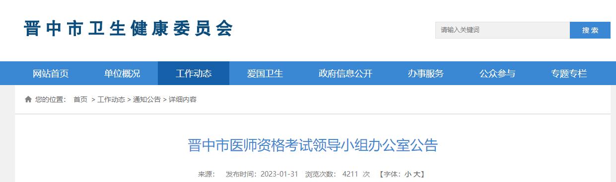 晉中市醫(yī)師資格考試領(lǐng)導(dǎo)小組辦公室公告