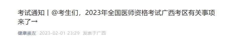 2023年全國醫(yī)師資格考試廣西考區(qū)崇左考點考試通知