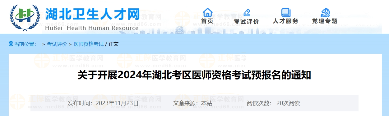 關于開展2024年湖北考區(qū)醫(yī)師資格考試預報名的通知